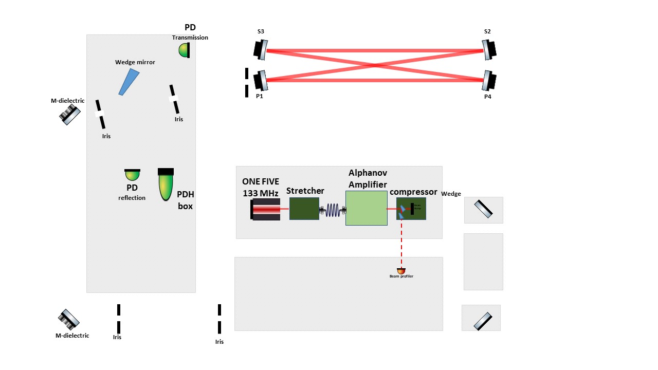 an additional set-up was made using two 4 deg wedges instead of High reflecting (HR) and Anti-reflecting (AR) mirrors.