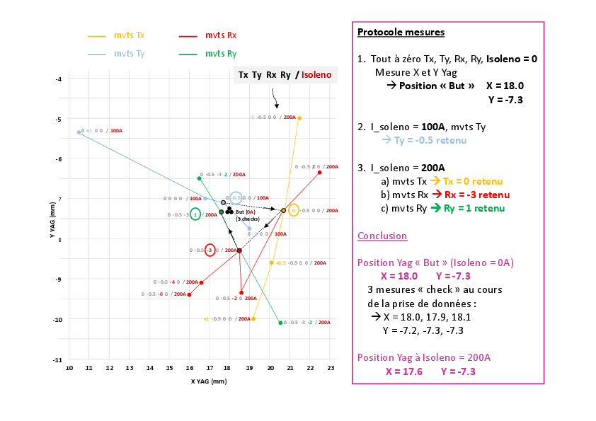 - Alignement = minimiser le déplacement du faisceau lorsqu'on varie le champ dans le solénoide