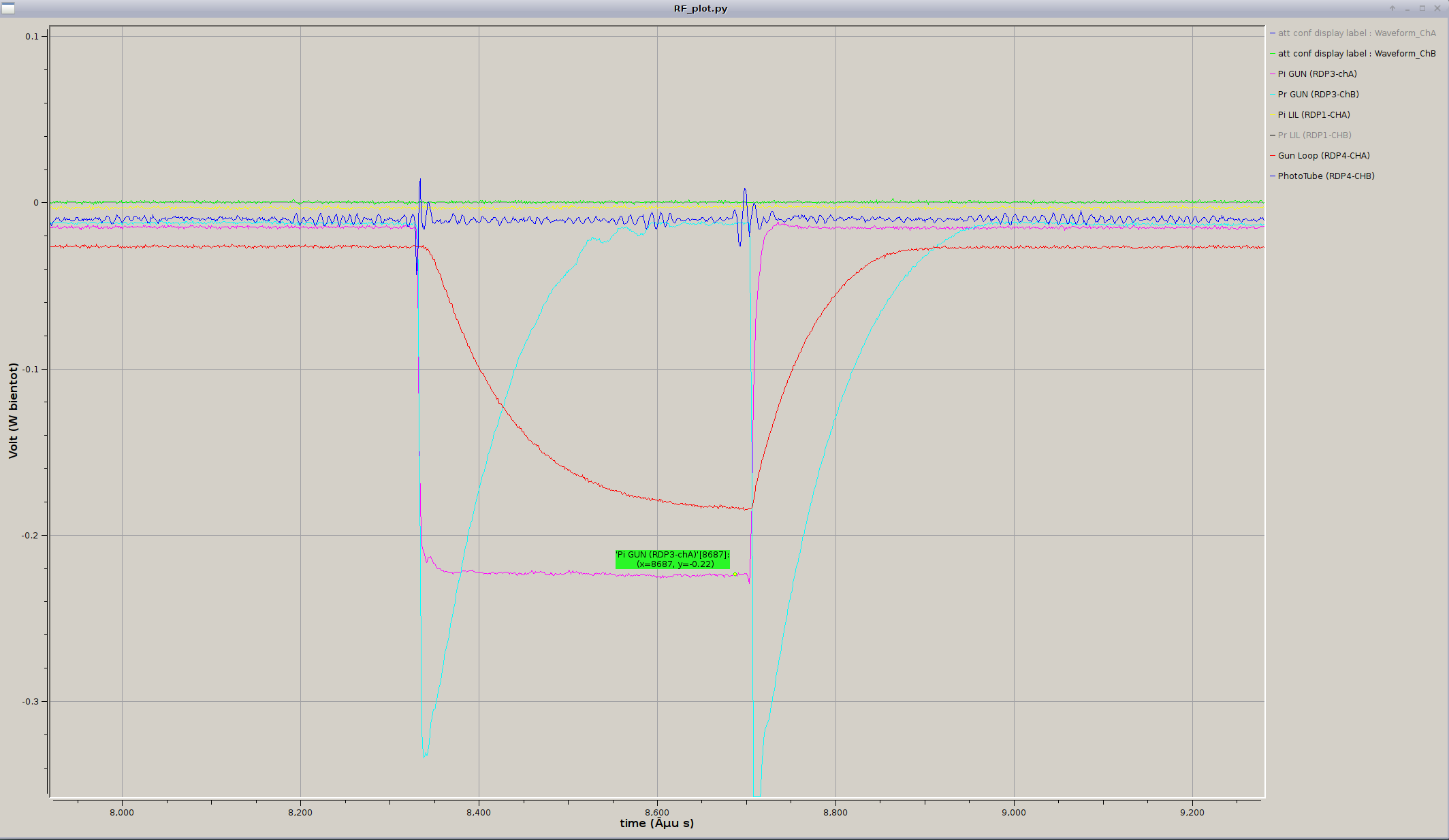 Mise en trig du modulateur, pas de signaux RF sur l'IHM RF Plots du modulateur.