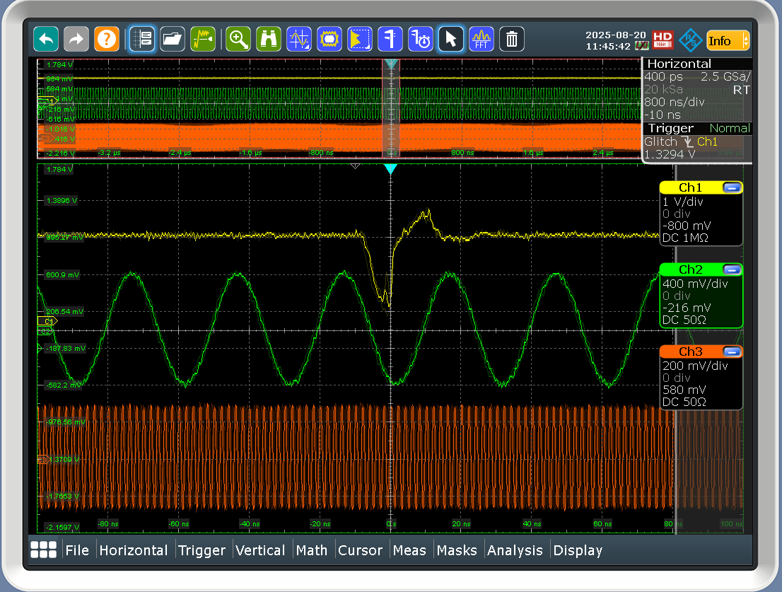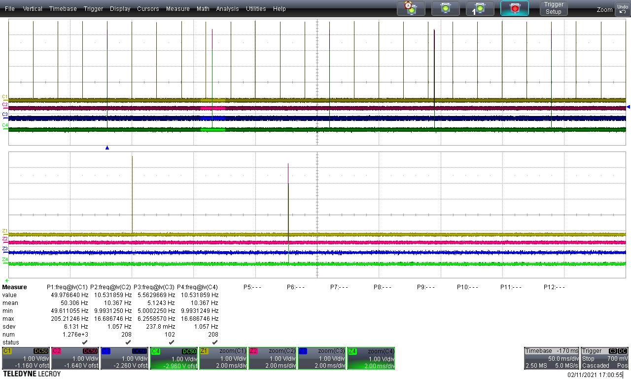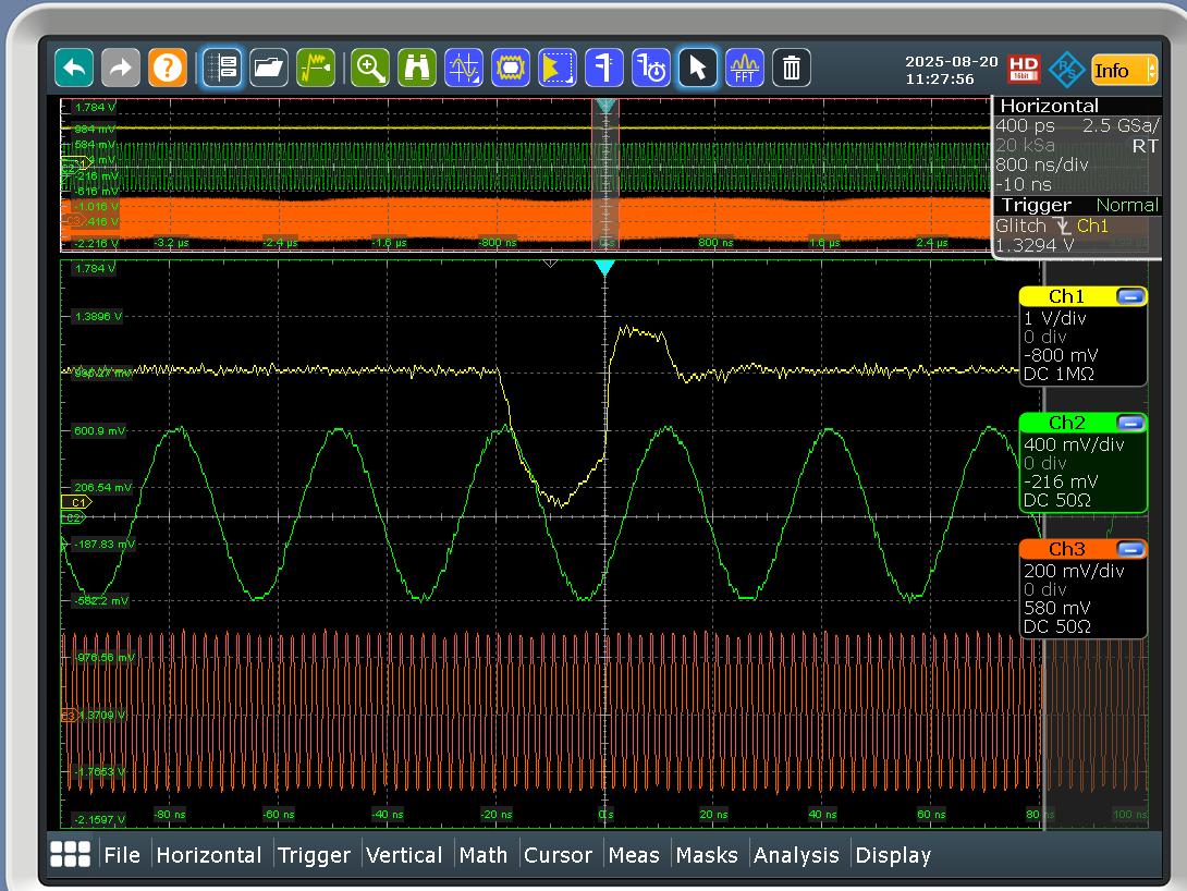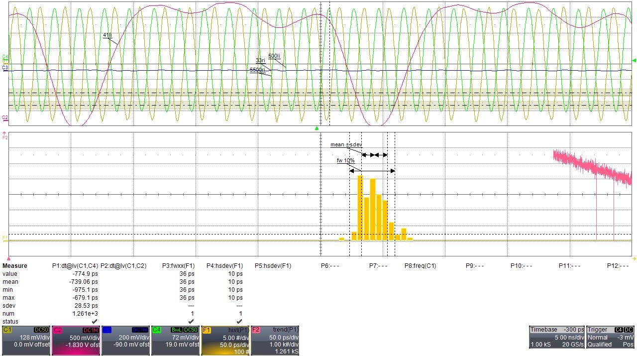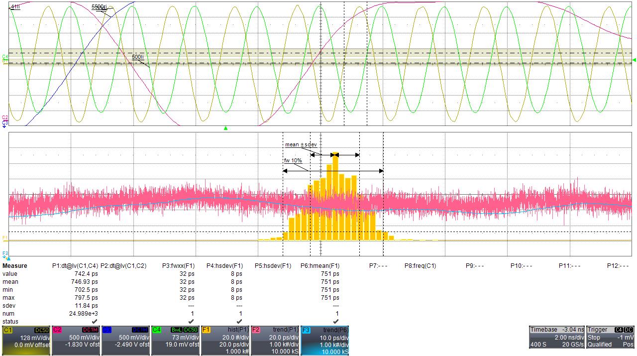 Conclusion des mesures: quand il y a des coups manque, un decalage de quelques centaines de Hz sur le 3GHz linac permet de trouver une frequence ou il n'y a plus de coups manques. Un tel decalage est probablement transparent pour tous les autres systemes. Ce resultat est valide pour une frequence anneau au moins entre 499.9905MHz et 500.250MHz. A 500.250MHz le jitter observe etait inferieur a 10ps entre les deux 500MHz sur une duree de 6h (cf entree elog separee).